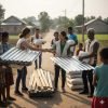 Volunteers distribute essential construction materials to families in need.